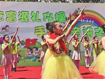 ■富源路小学的师生编排文明礼仪操,培养文明好习惯,做合格的城市小主人。 郭菁荔 摄