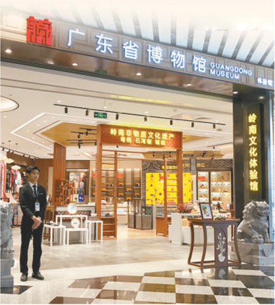 2017年,广东省博物馆开始关注机场中旅客的文化休闲需求。博物馆与广州白云国际机场签订合作协议,首次将博物馆的展览和教育活动延伸到机场。在白云机场全新开放的3300平方米的“丝路”主题公共艺术空间——“海天走廊”中,推出“牵星过洋:广州海贸传奇”展览。展览将空间设计、三维触屏等技术手段与文物展品的艺术呈现相结合,以突显文化的多元与对话。艺术元素和文化服务进入机场公共空间,强化资源共享和优势互补,是博物馆与交通运输行业在提升城市形象、拓展文化服务以及打造自身品牌方面的积极尝试。6个月里超过90万人次的参观量也为城市和博物馆吸引了更多喜爱中国文化和艺术的潜在观众。广东省博物馆顺势而为,与白云机场合作在T2航站楼开设了两处广东省博物馆体验馆,通过展览、互动活动、非遗表演和文化创意产品向旅客传播历史和文化知识,擦亮岭南文化名片,更好地讲述中国故事。